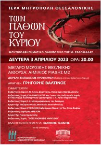 The stunning artistic Hymnology took place at Emilios Riadis Hall of Thessaloniki Concert Hall as part of the broader preparations for the “Aortes of Holy Week -Great Feast” of the Resurrection of Christ, organized by the Holy Metropolis of Thessaloniki with the assistance of the Regional Union of Municipalities of Central Macedonia and the Thessaloniki Concert Hall Organization.