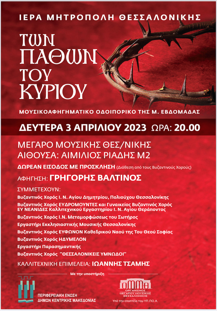 Eight Byzantine choirs similar to Holy Churches of the Holy Metropolis of Thessaloniki, presented a unique musical narrative journey of the days of Holy Week with selected church hymns.